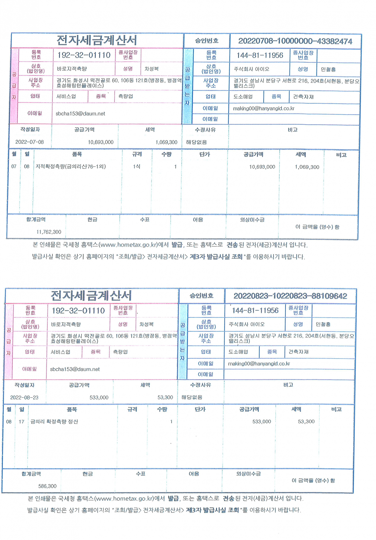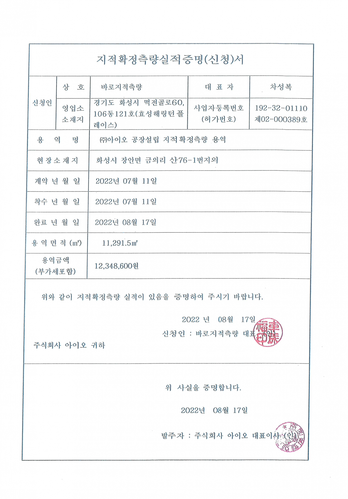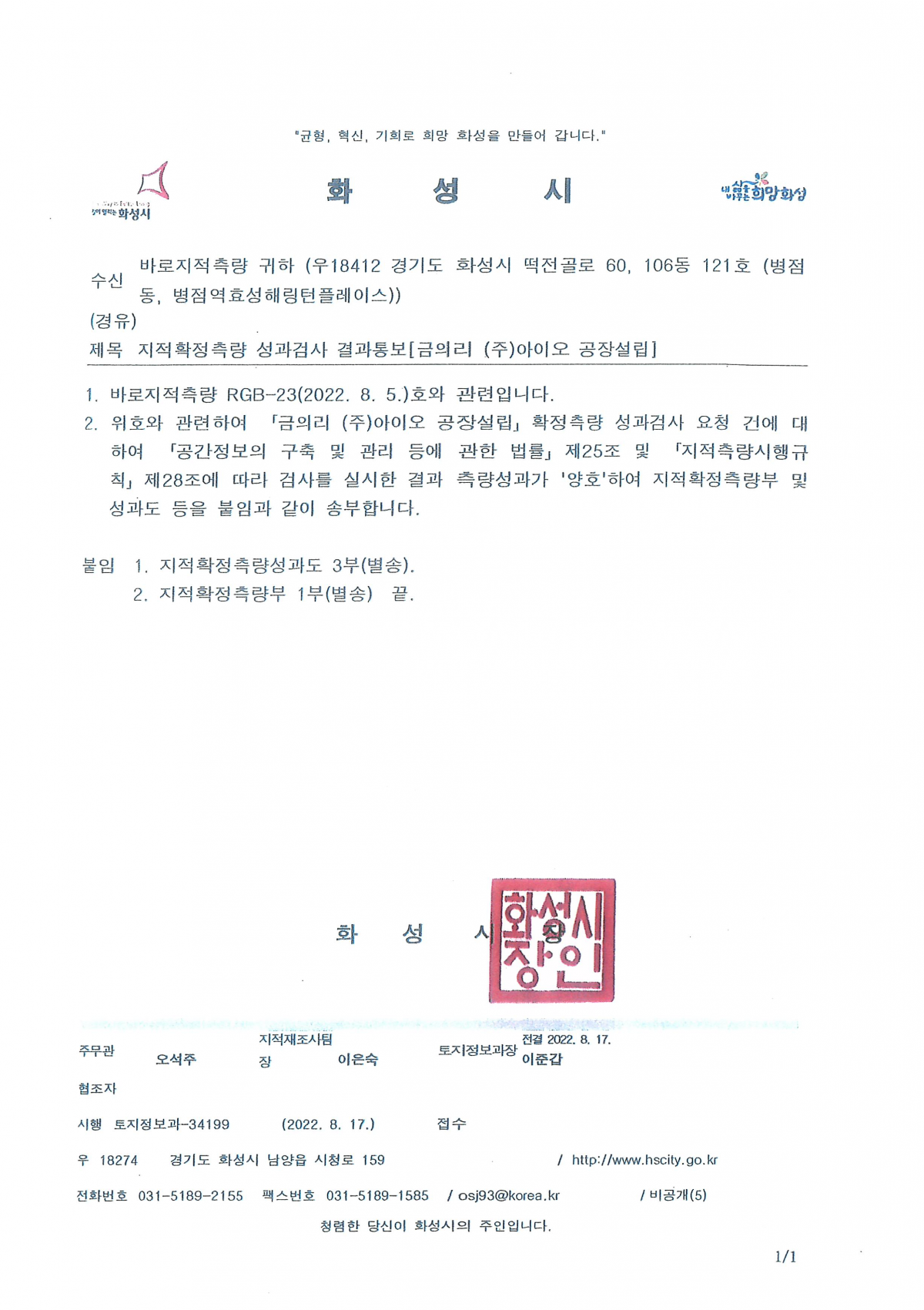 (주)아이오 공장설립 지적확정측량 완료(22.07.11 ~ 22.08.17)
